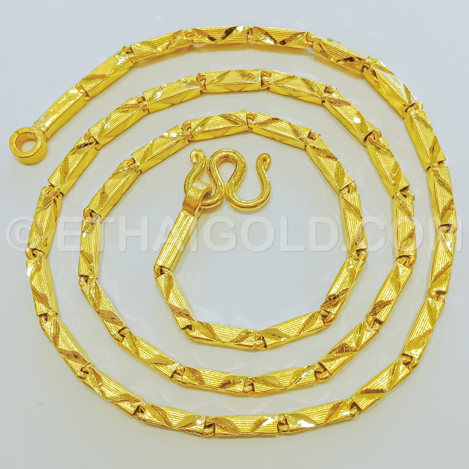 1/2 BAHT MATTE DIAMOND-CUT SOLID SQUARE BARREL CHAIN NECKLACE IN 23K GOLD (ID: N2002S)