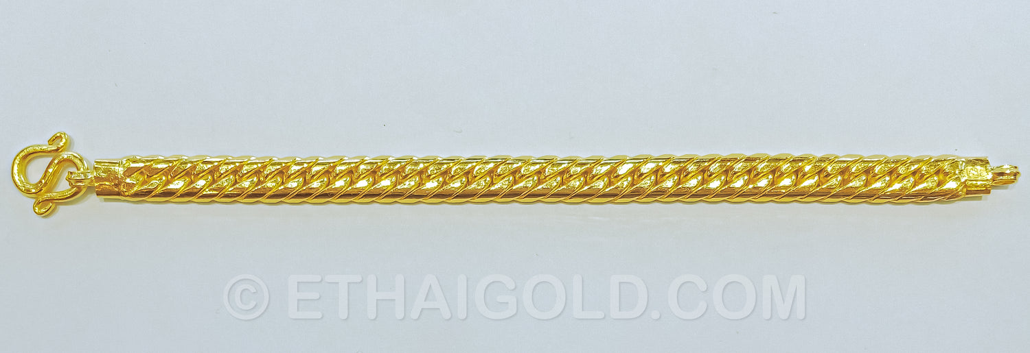 1/2 BAHT POLISHED SOLID DOMED CURB CHAIN BRACELET IN 23K GOLD (ID: B0602S)