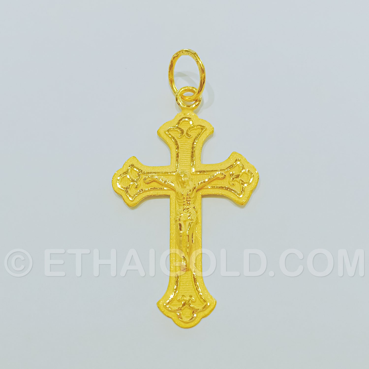 1/8 BAHT POLISHED MATTE SOLID CRUCIFIX CHRISTIAN PENDANT IN 23K GOLD (ID: P040HS)