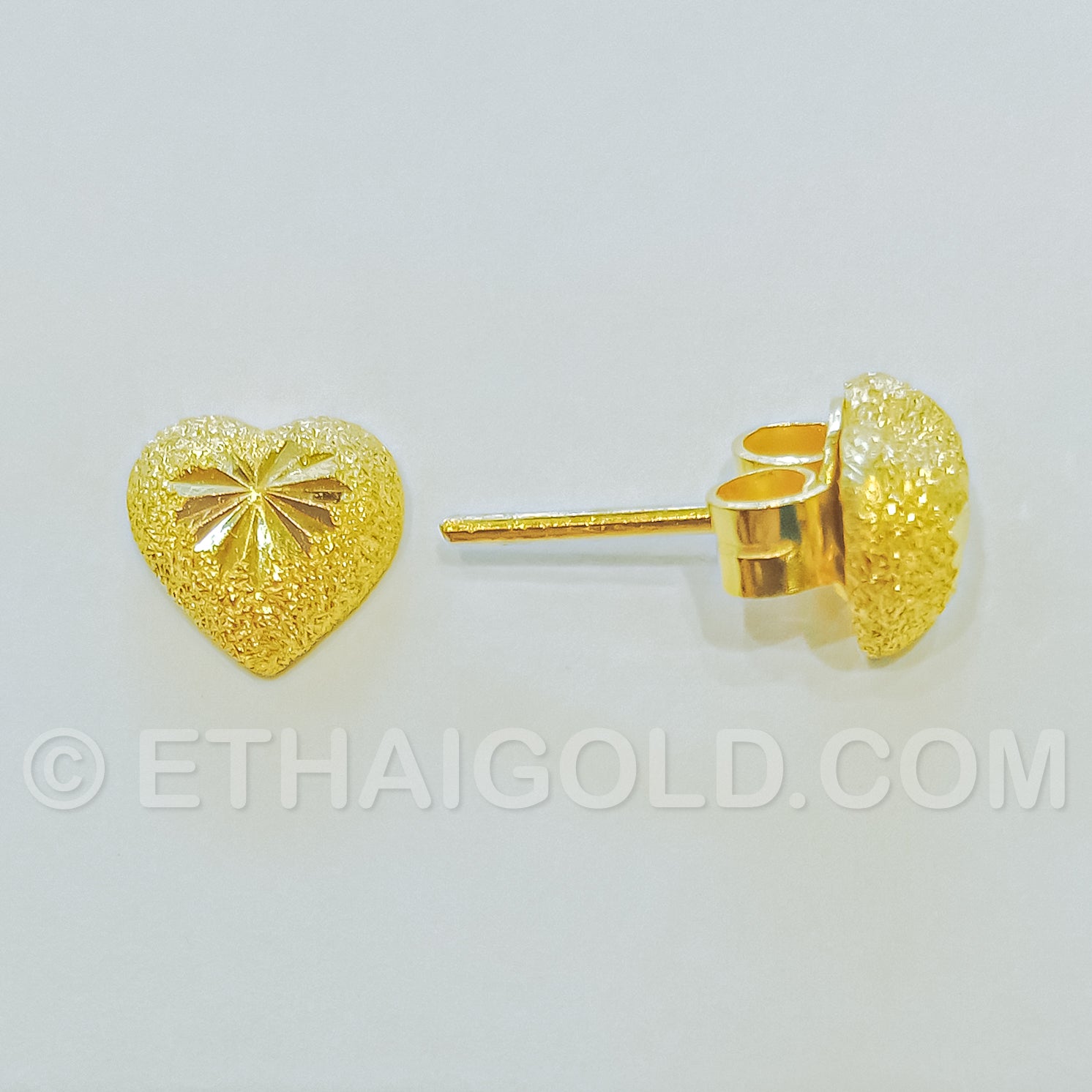 1/8 BAHT SPARKLING DIAMOND-CUT HOLLOW HEART STUD EARRINGS IN 23K GOLD (ID: E020HS)