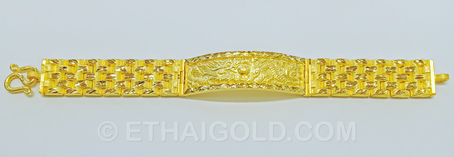 1 BAHT MATTE DIAMOND-CUT HOLLOW DRAGON FIVE ROW WATCH BAND BRACELET IN 23K GOLD (ID: B1001B)