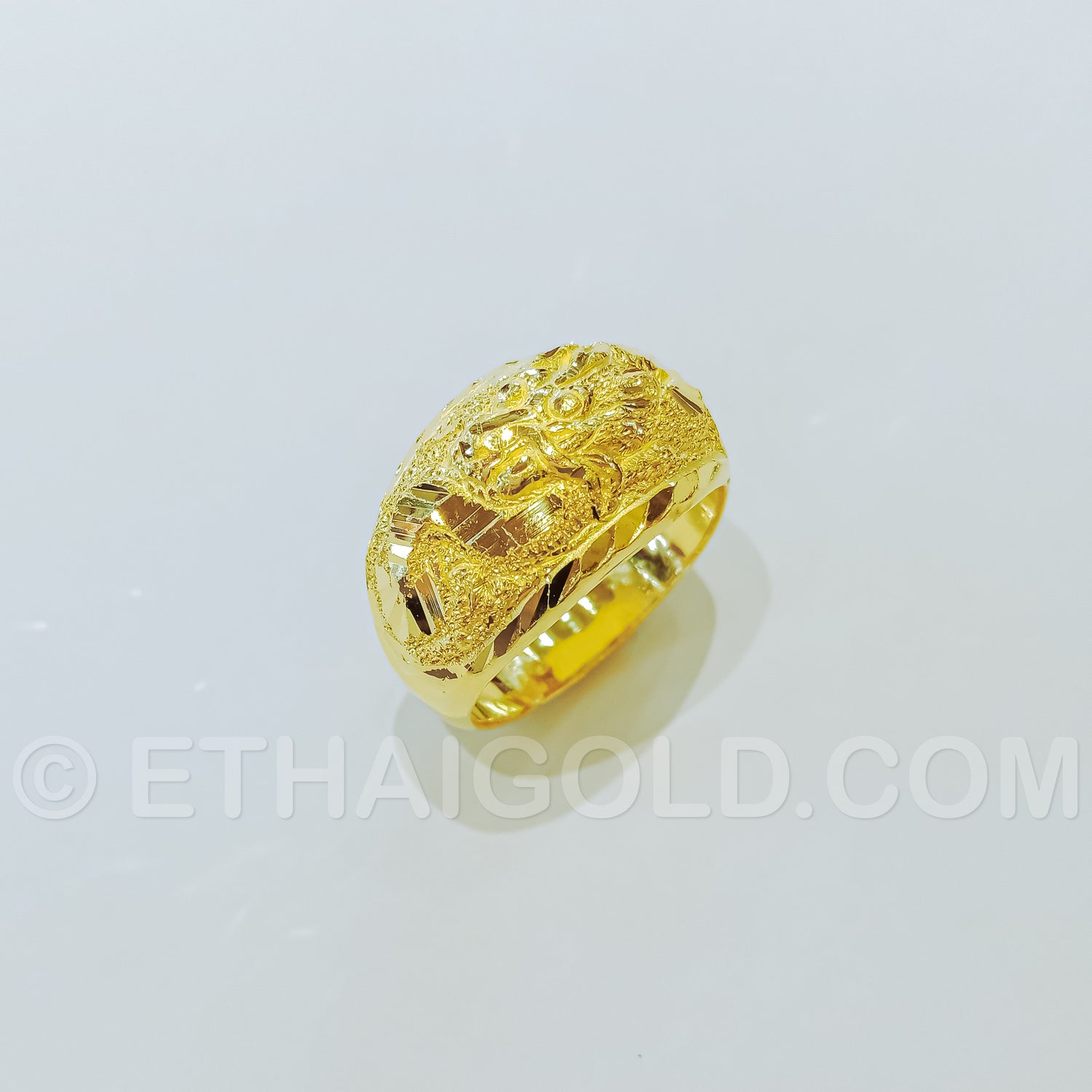 1 BAHT POLISHED SPARKLING DIAMOND-CUT HOLLOW DRAGON RING IN 23K GOLD (ID: R1301B)