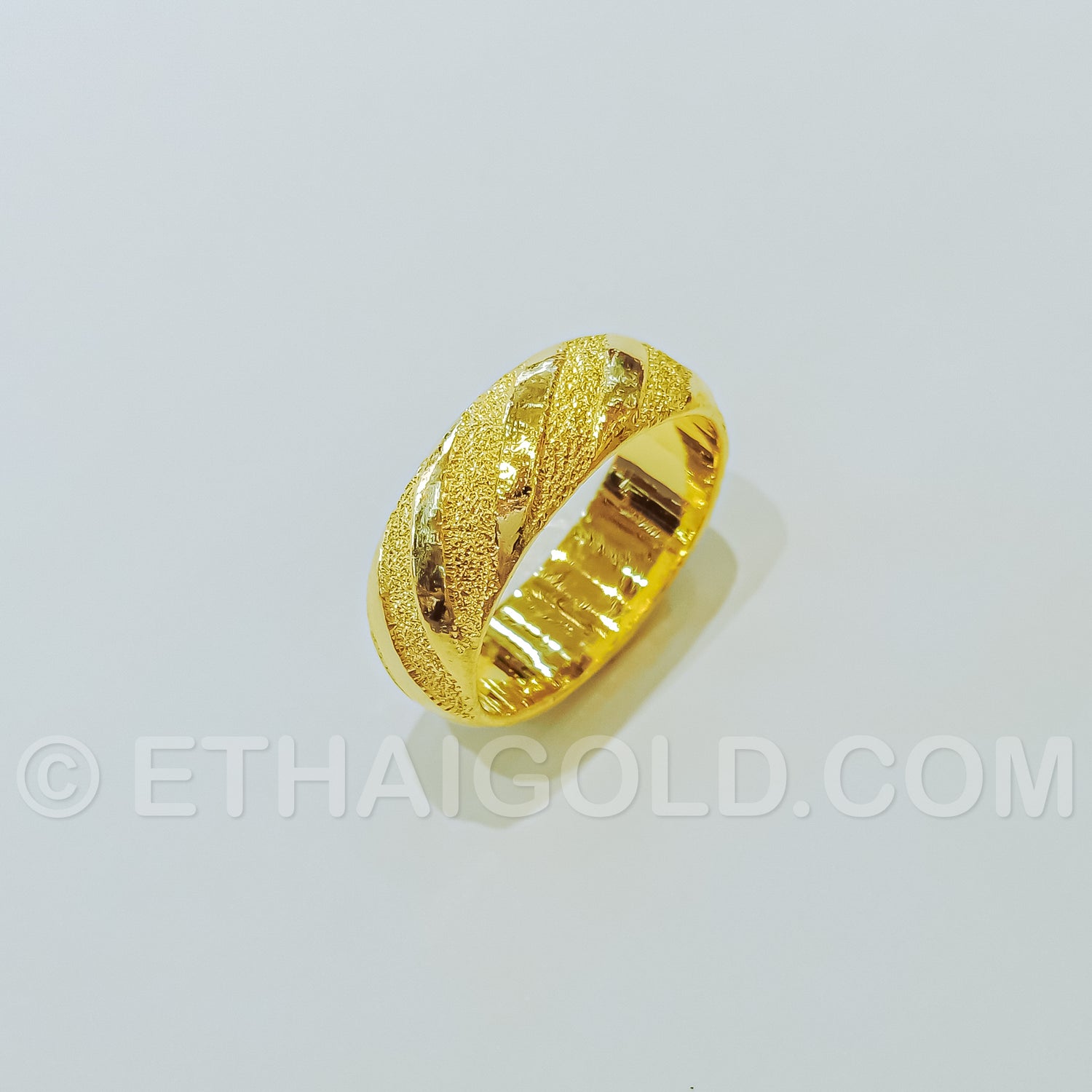 Design: Polished sparkling solid striped domed wedding band ring (Kliang-Ton-Jik-Pet-Sar-Lub-Ngao in Thai name)