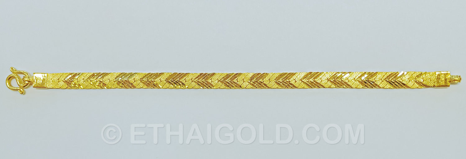 2 BAHT MATTE DIAMOND-CUT SOLID FLAT CURB CHAIN BRACELET IN 23K GOLD (ID: B0202B)