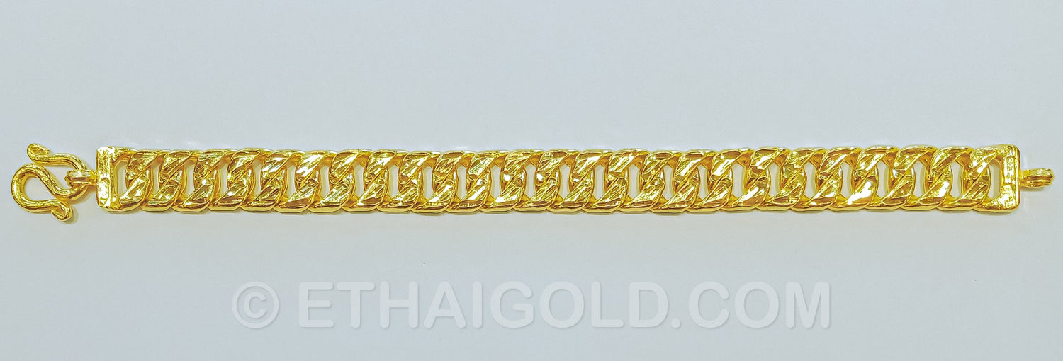 2 BAHT POLISHED DIAMOND-CUT SOLID CURB CHAIN BRACELET IN 23K GOLD (ID: B0402B)