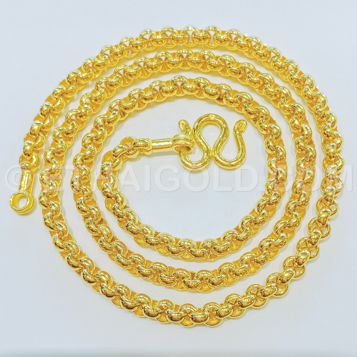Design: Polished solid rolo chain (Pha-Whai-Ton-Ngao in Thai name), Polished solid M clasp
