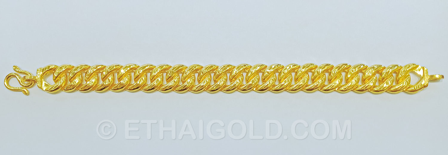 3 BAHT POLISHED DIAMOND-CUT HOLLOW CURB CHAIN BRACELET IN 23K GOLD (ID: B4403B)